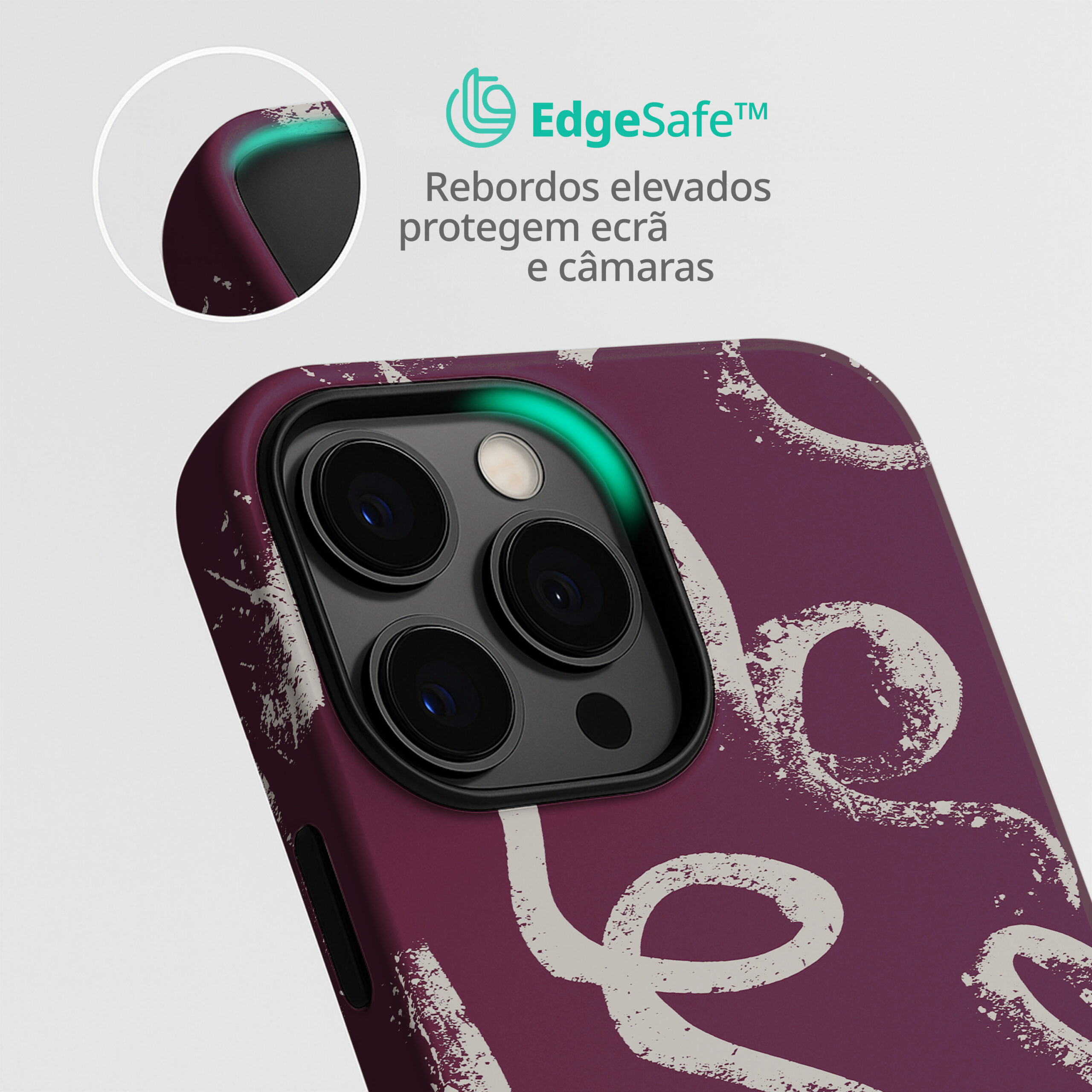 – Bordas elevadas (1,5mm): proteção extra para o ecrã e para as lentes da câmara.